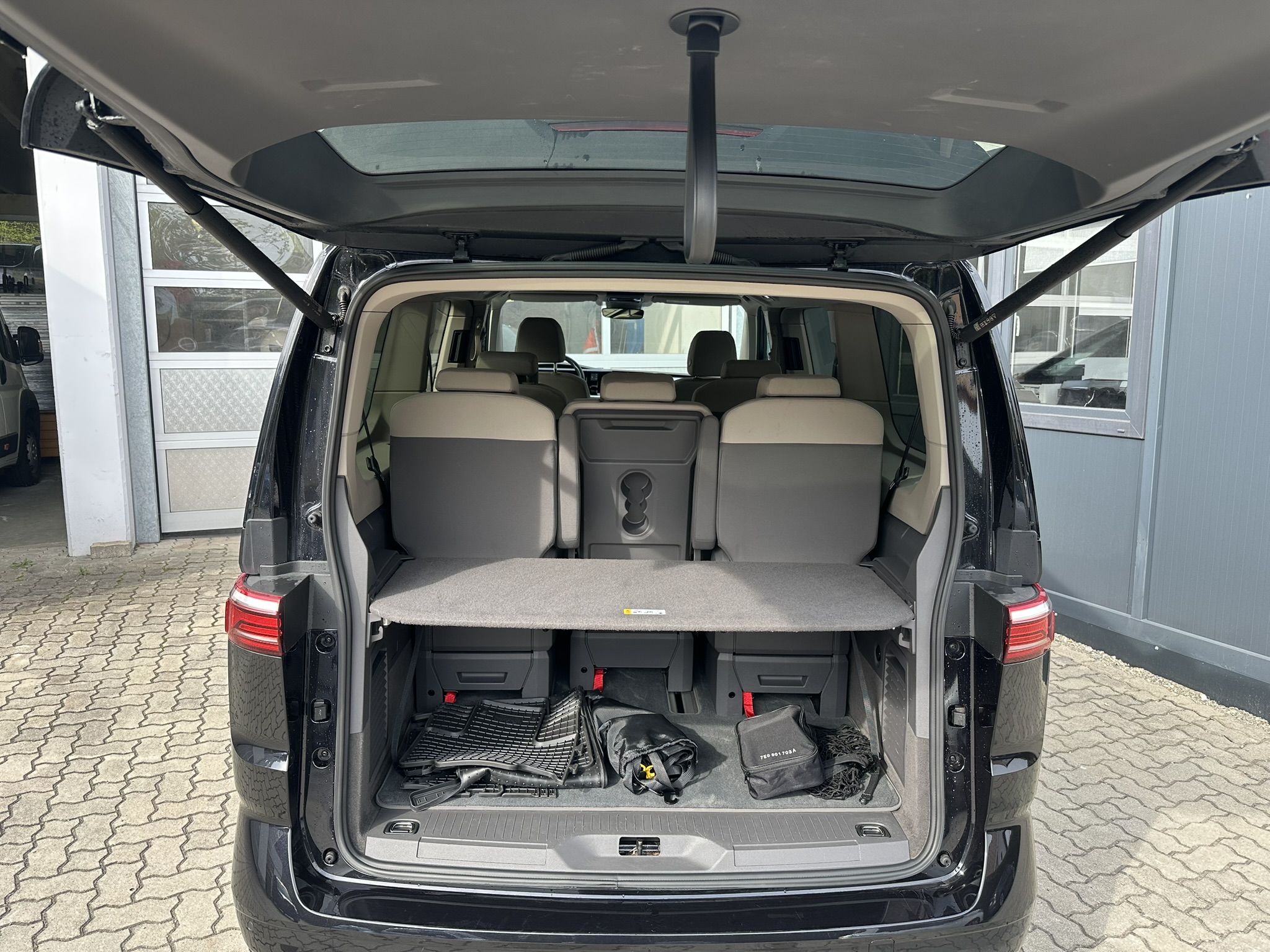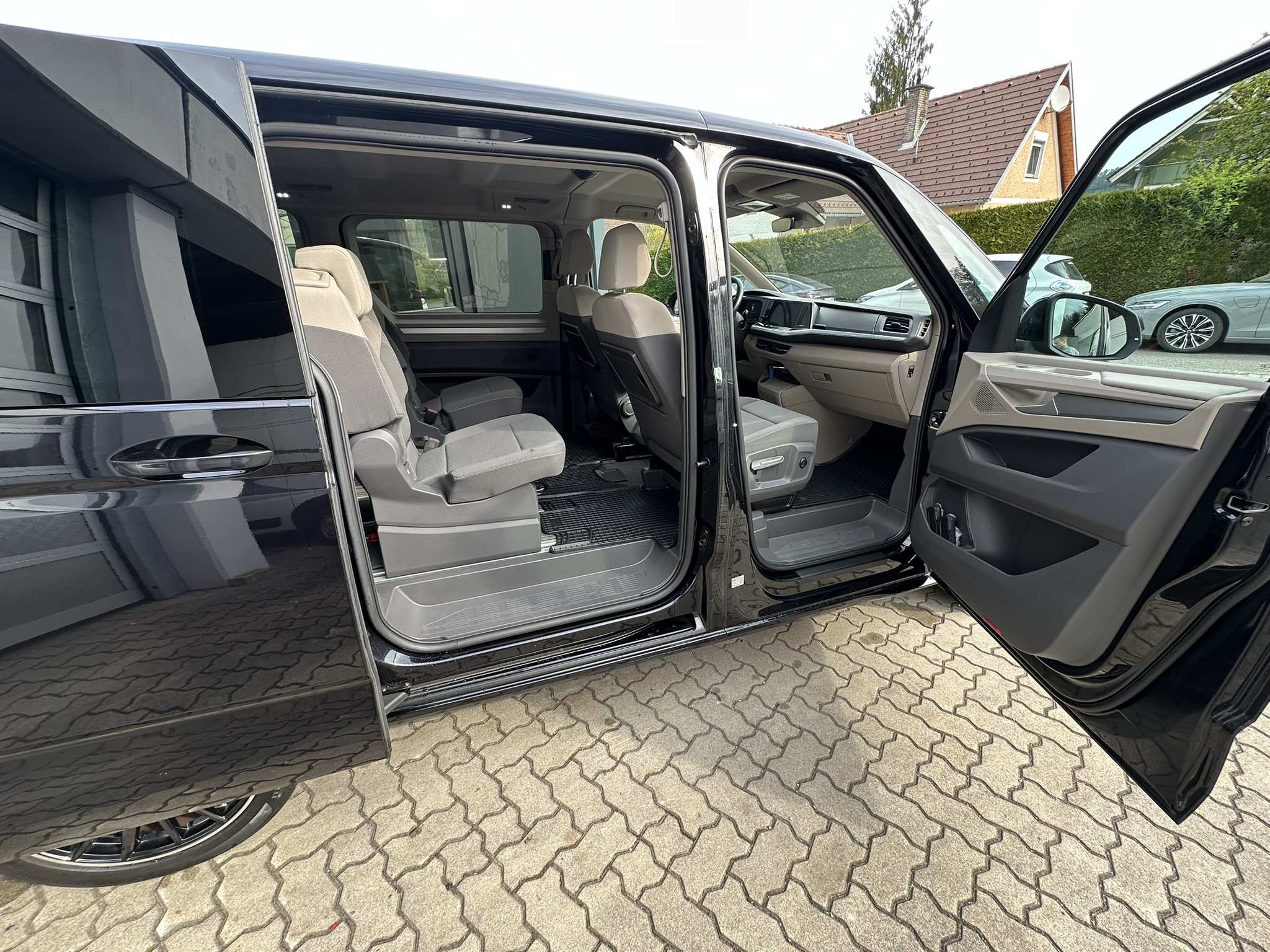 Ausführung: Life, Ausführung: Multivan, Ausstattungs-Paket Licht + Sicht, Außenspiegel konvex, links, Außenspiegel konvex, rechts, Außenspiegel schwarz lackiert, Blinkleuchten LED in Außenspiegel integriert, Bodenbelag im Lade-/Fahrgastraum Teppich, Bordwerkzeug und Reifen-Reparaturkit, Bremsbelagverschleissanzeige, Fahrassistenz-System: Ausweich-Assistent und Abbiege-Assistent, Fenster im Lade-/FG-Raum: - feststehend, vorn links, Fenster im Lade-/FG-Raum: - feststehend, vorn rechts, Frontscheibe Verbundglas getönt, Funkschlüssel (2), Fußmatten Fahrerhaus: Textil, Handschuhfach beleuchtet, Heckscheibe heizbar, mit Wischanlage, Innenausstattung: Dekoreinlagen Dark Silver brushed, Karosserie/Aufbau: Bus, Laderaumunterteilung und Gepäcksicherungsnetz, Lautsprecher (8), Mobile Online Dienste Vorbereitung We Connect und We Connect Plus, Nichtraucher-Paket, Radstand 3124 mm, Schadstoffarm nach Abgasnorm Euro 6d, Leuchtweitenregelung, Schubladen unter Rücksitze außen und 2 Abfallbehälter, Sitz-Paket: 7-Sitzer, 2-2-3 (2 Einzelsitze, 2 Einzelsitze, 3 Einzelsitze), Sitzausstattung: 7-Sitzer, Sitze im Lade-/FG-Raum: 1.Reihe, 2 Einzelsitze, Sitze im Lade-/FG-Raum: 2.Reihe, 3 Einzelsitze, Sitzbezug / Polsterung: Stoff Ribella, Sitze im Fahrerhaus: Beifahrersitz höhenverstellbar, Sitze im Fahrerhaus: Fahrersitz höhenverstellbar, Sitze im Lade-/FG-Raum: 1.Reihe mit 2 Armlehnen innen (abnehmbar), Sonnenblenden mit Spiegel (beleuchtet), Verbandkasten und Warndreieck, Warnanlage für Sicherheitsgurte vorn und hinten, Zierleiste zwischen Scheinwerfern: schwarz lackiert und Chromleisten, Digital Cockpit Pro (Instrumentenanzeige Digital), Lackierung: Perleffekt-Lackierung, Verglasung hinten abgedunkelt (65 %)